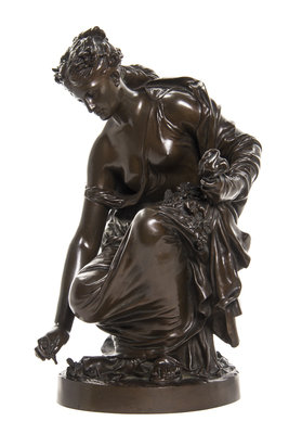 depicting a female picking flowers raised on a naturalistic base, the side of the base incised F. Barbedienne Fondeur Paris.