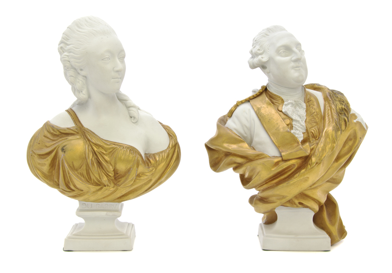 Two Sevres Style Partial Gilt Bisque Busts,