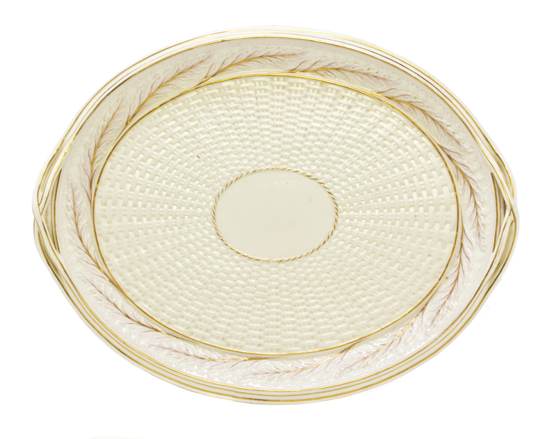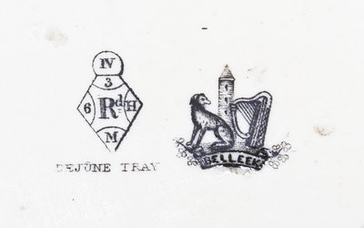 1863-1890, decorated with tinted leaves and gilt highlights, having first Belleek black mark and printed registry marks.