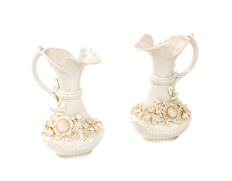 1891-1926, each of baluster form with applied flowers and second Belleek black mark to base.