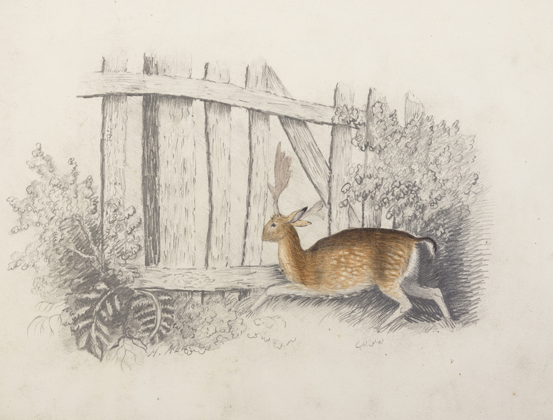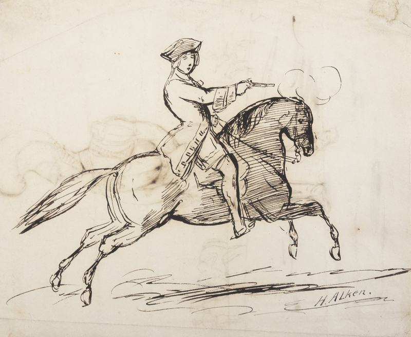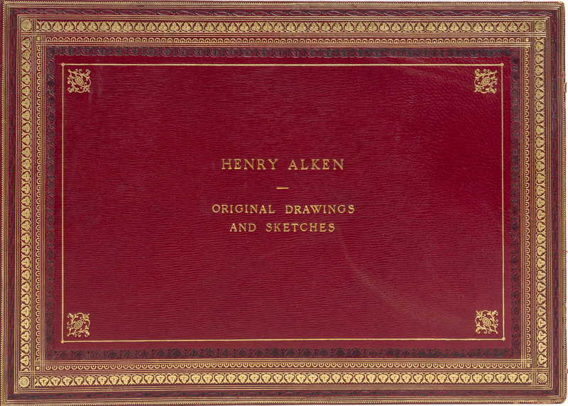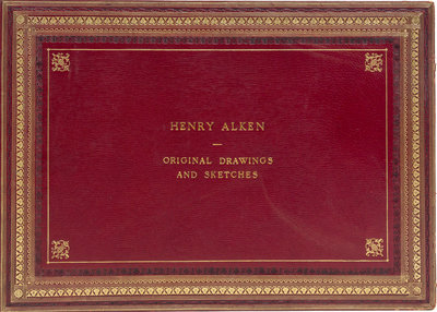 [Original Drawings and Sketches.] S.l.: s.n., n.d. A collection of seven original sketches, three color, four signed, each mounted in a mat. Oblong 4to, gilt-lettered and decorated red morocco, a.e.g. Minor wear to boards; light foxing to some plates.