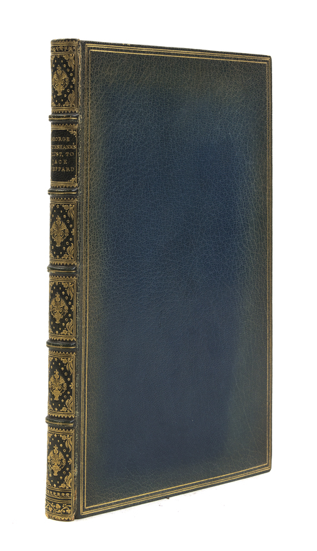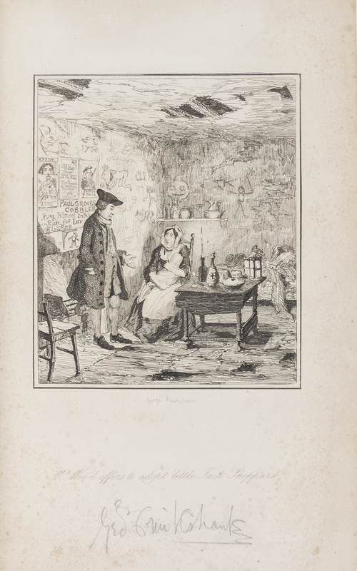 [Illustrations to Accompany Jack Sheppard.] [London:] s.n., [1839]8vo, bound in light blue crushed morocco, gilt-tooled and lettered spine, t.e.g. A complete set of 27 etchings, each signed by George Cruikshank in pencil at the bottom of plate. Some fading to boards; hinges starting; bookplate tipped in front pastedown; light foxing affecting margins of plates.