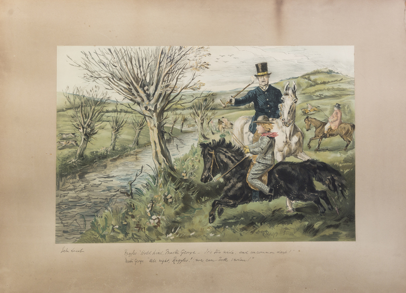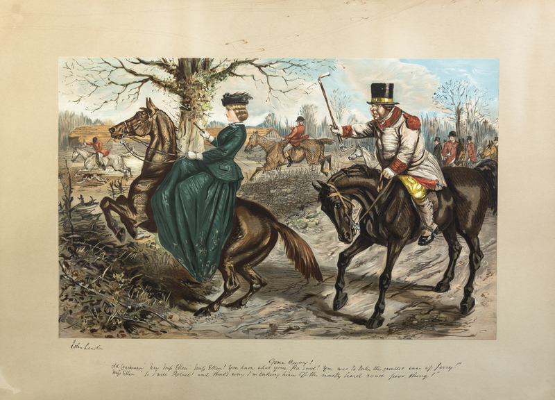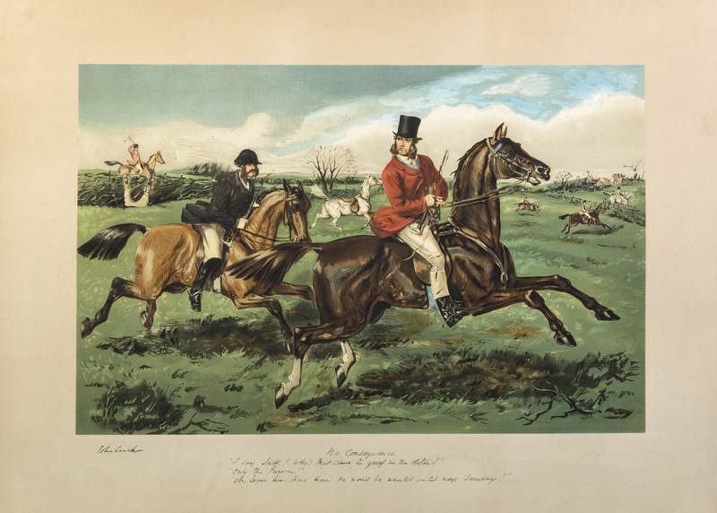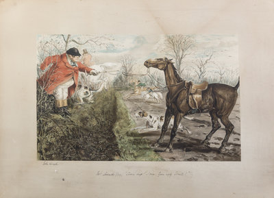 A group of four proof engravings depicting hunting scenes, hand-colored. Comprising Come help - I say, you ugly brute!; Come away!; No consequence; and Ruggles...