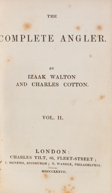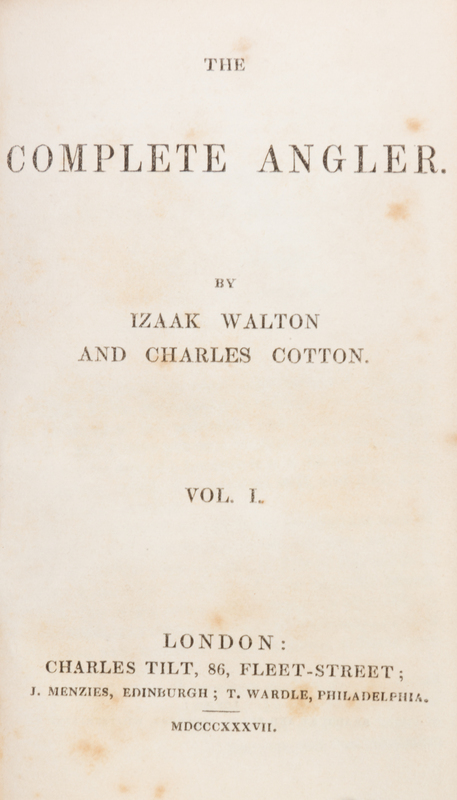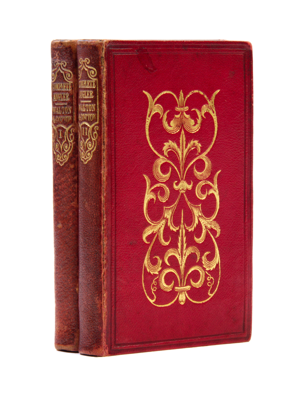 The Complete Angler. London and Edinburgh: Charles Tilt and J. Menzies, 1837. 2 vols. 32mo, gilt-decorated red morocco, gilt-lettered spines, a.e.g. First American edition, with half-titles, engraved frontispieces, and 10 pp. publisher's advertisements to rear of vol. 2. Minor edgewear; armorial bookplate tipped to front pastedown, both vols.; scattered brownspotting.