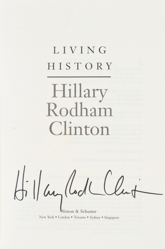 Living History. New York: Simon & Schuster, 2003.8vo, publisher's quarter cloth, gilt-lettered spine, photo-pictorial dust jacket. First edition, signed by Clinton on the title page. Minor edgewear.