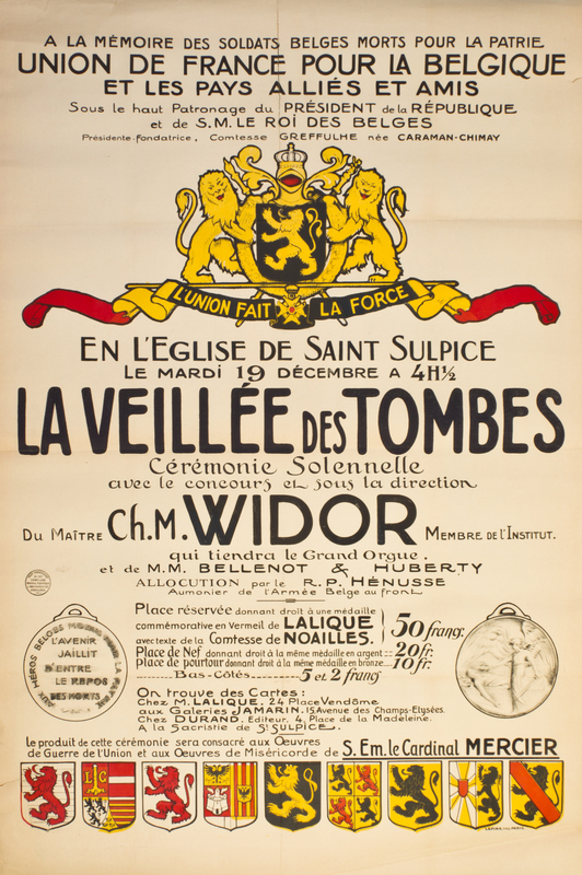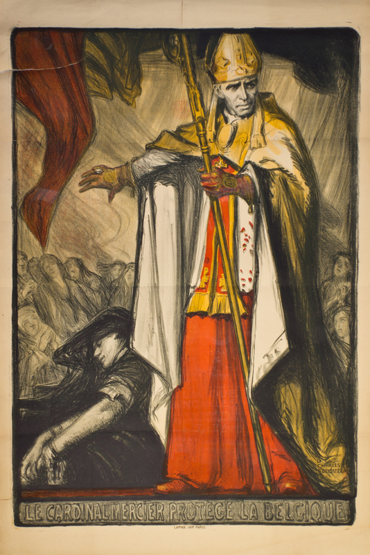 Two posters, comprising Cardinal Mercier protege la Belgique, and A la memoire des soldats Belges morts pour la patrie Union de France pour la Belgique et les pays allies et amis.