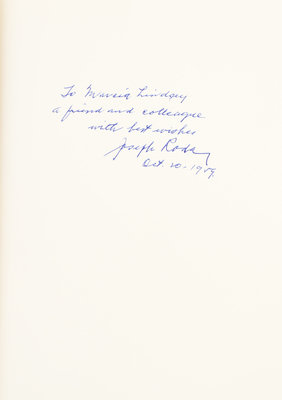 Bows for Musical Instruments of the Violin Family. Chicago: William Lewis & Son, 1959.4to, publisher's quarter tan morocco over gilt-lettered boards, gilt-lettered spine. First printing, Library edition, limited to 3,000 copies of which this is number 736. Inscribed by Roda, "To Mareia Lindsey, a friend and colleague / with best wishes / Joseph Roda / Oct. 20, 1959" on the f.f.e.p. Fine.
