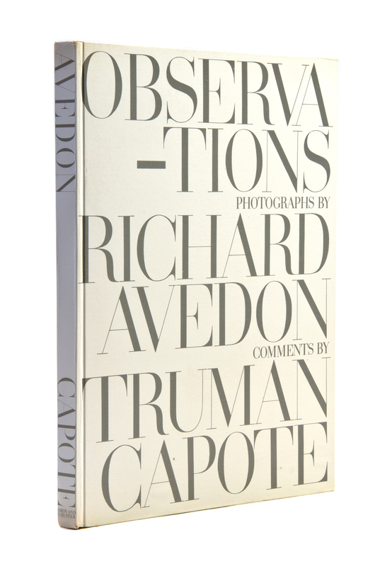 Observations. New York: Simon and Schuster, (1959).Folio, original printed boards, acetate jacket, publisher's slipcase. First edition, with photographic illustrations by Avedon. Minor wear to slipcase; previous owner's signature to f.f.e.p.; marginal chipping to glassine.