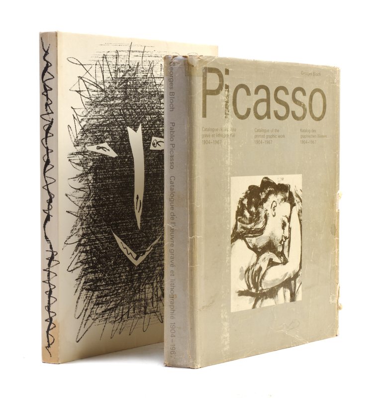 Picasso Lithographe. Notices et Catalogue Etablis par Fernand Mourlot. IV. 1956-1963. Monte-Carlo: Andrew Sauret, (1964).4to, original color lithographed stiff wraps, glassine. With two original lithographs including the cover and frontispiece, with 86 additional reproductions, many color. Chipping to glassine; marginal toning to most leaves.[Together with:] Pablo Picasso. Catalogue de l'ouevre grave et lithographie, 1904-1967. By Georges Bloch. Berne: Editions Kornfeld et Klipstein, (1968). 4to, publisher's cloth lettered in black, dust jacket. With numerous reproductions of Picasso's work throughout. Light soiling to cloth; wear and marginal chipping to jacket; toning to extremities of leaves.