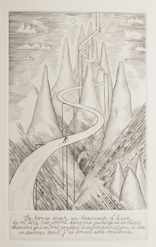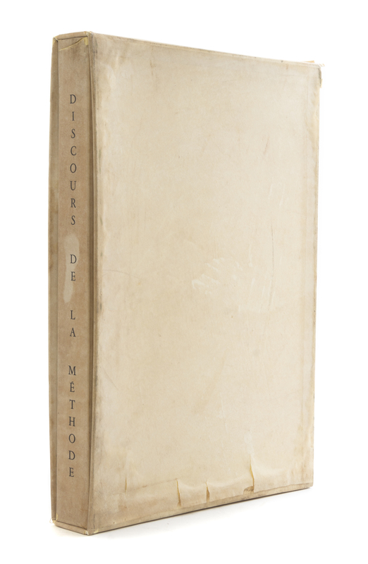 Discours de la methode. Burins de Roger Vieillard. Paris: (Marthe Fequet, Pierre Baudier and Roger Lacouriere), 1948.Folio, contents loose as issued in publisher's vellum boards, slipcase. Limited edition, number 131 of 185 copies on Velin de Montval. With 16 engravings. Minor soiling to boards and slipcase.