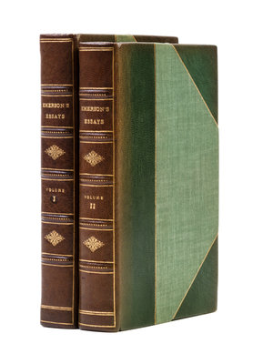Essays. [First &] Second Series. Boston: James Munroe, 1841 and 1844.2 vols. 8vo, rebound in 3/4 green morocco over cloth, gilt-lettered spines. First editions, with half-title in first volume, two pages of advertisements bound in at the end of the second volume. Uniform fading to spines; scattered light foxing.