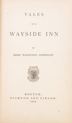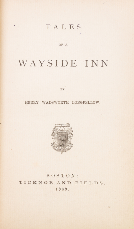 Tales of a Wayside Inn. Boston: Ticknor and Fields, 1863.8vo, publisher's brown cloth, gilt-lettered spine, cloth slipcase. First edition, later state. Fading to boards; hinges starting.