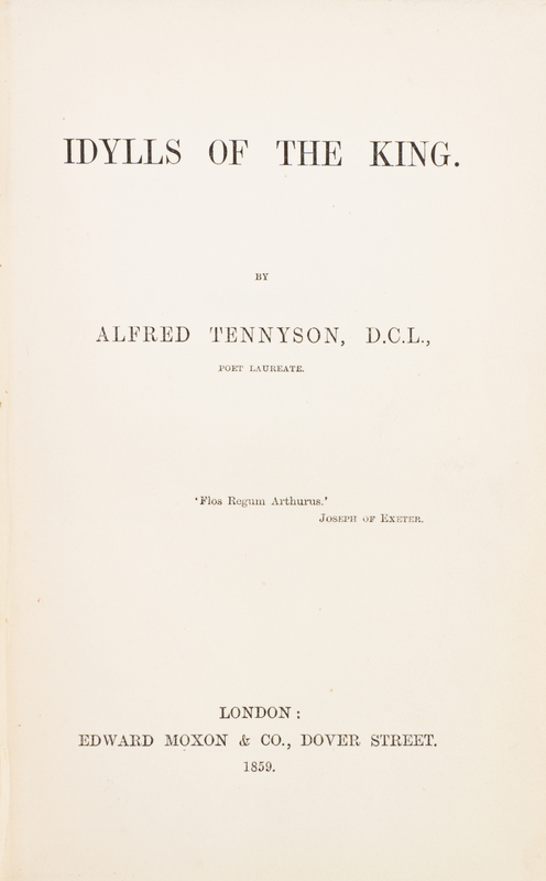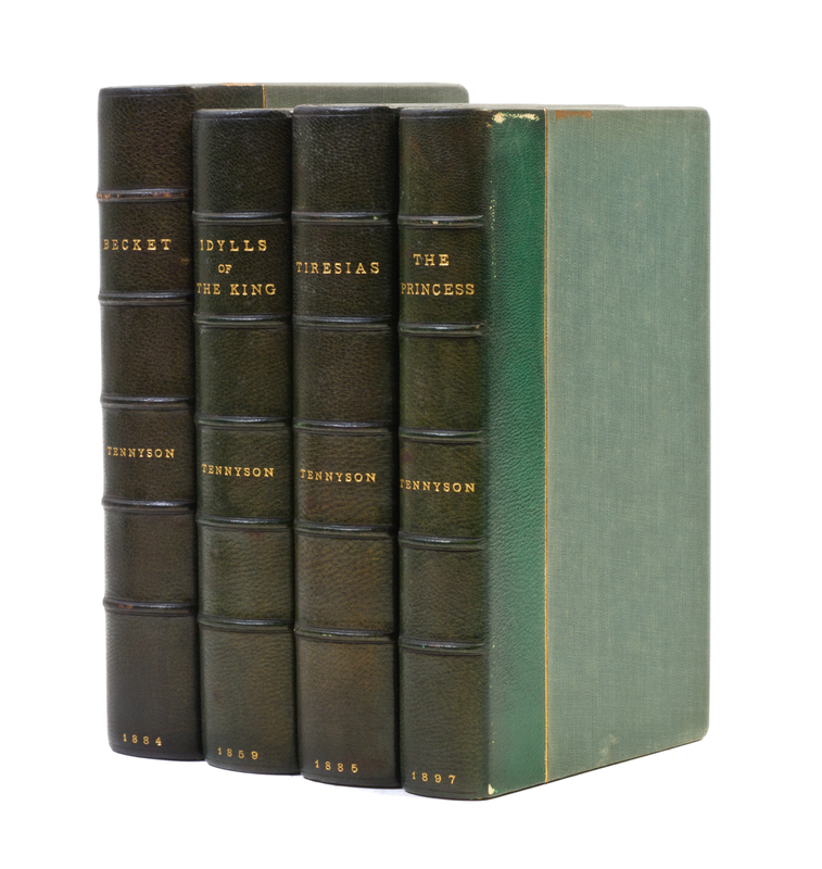 A group of four first editions. 8vo, publisher's green cloth, two of which are blind-stamped. The Princess. London: Edward Moxon, 1847. 8pp. advertisements dated November 1, 1847. Idylls of the King. London: Edward Moxon, 1859. 8 pp. advertisements dated July 1859. Becket. London: Macmillan, 1884. Tiresias. London: Macmillan, 1885.