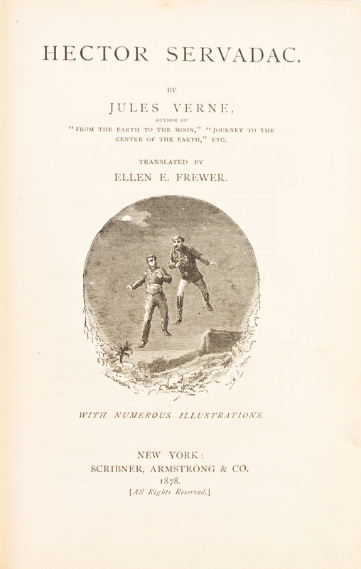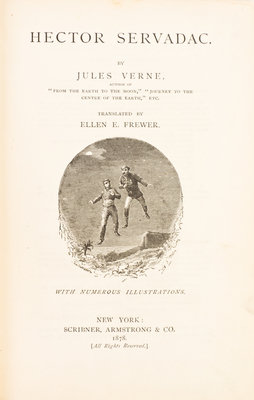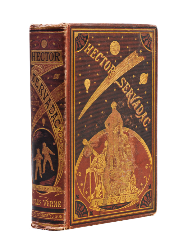 Hector Servadac. New York: Scribner, Armstrong, 1878.8vo, publisher's gilt-pictorial red cloth. First American edition. Wear and fading to boards; ends bumped and chipped; hinges starting.