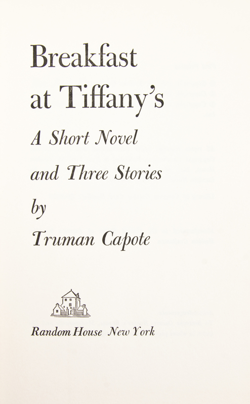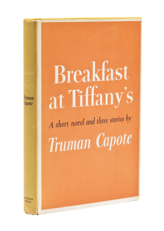Breakfast at Tiffany's. A Short Novel and Three Stories. New York: Random House, 1958. 8vo, publisher's yellow cloth, title in gilt to black spine label, original dust jacket with "10/58" date code on front flap. First edition, first printing. Fading to jacket at spine; light wear to spine label.