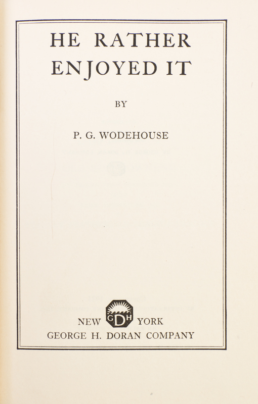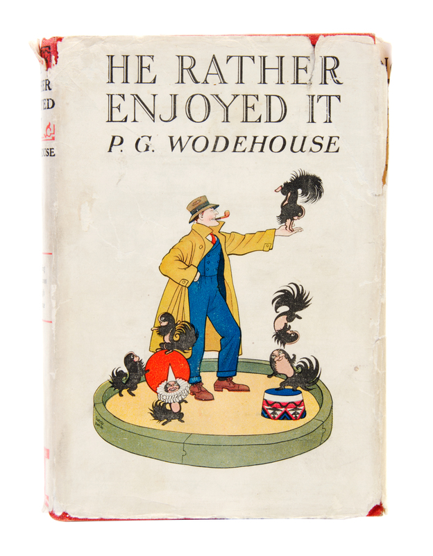 He Rather Enjoyed It. New York: George H. Doran, (1925).8vo, publisher's red cloth lettered in black, dust jacket. First American edition. Ends bumped; light soiling and marginal chipping to jacket with some loss to spine ends and rear panel; previous owner's signature in pencil to f.f.e.p.