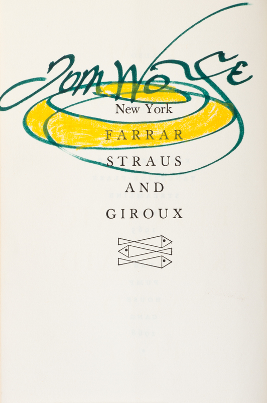 The Electric Kool-Aid Acid Test. New York: Farrar Straus and Giroux, (1968).8vo, publisher's white cloth, spine lettered in multi-colored foil, color-pictorial dust jacket. First edition, signed by Wolfe with decorative flourish in green and yellow marker facing the title page. Light soiling to boards; marginal chipping to jacket.
