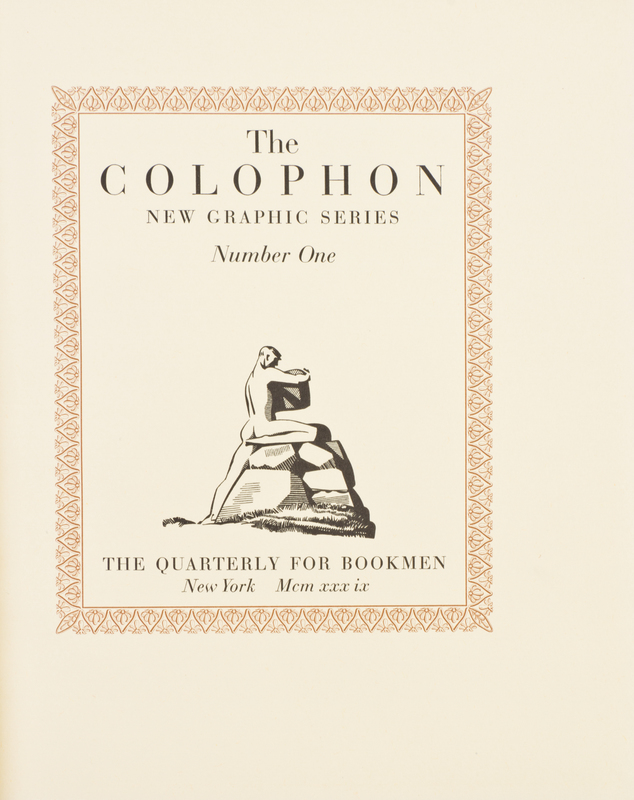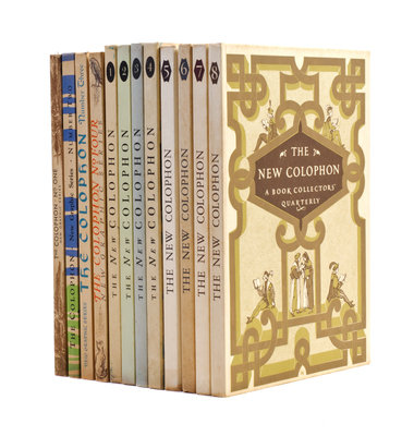 A group of 12 vols. of this popular quarterly for book collectors, including The New Colophon (Volume 1, parts 1-4, Volume 2, parts 5-8. New York, 1948-1950) and The Colophon: New Graphics Series (Nos. 1-3, and vol. 1 of no. 4. New York, 1939-1940). 4to, publisher's printed boards, some with original glassine.