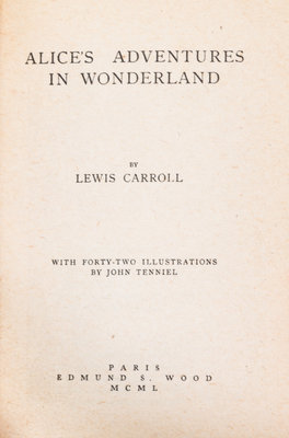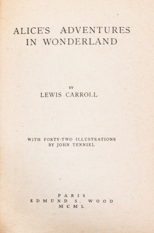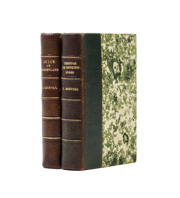 Alice's Adventures in Wonderland and Through the Looking-Glass And What Alice Found There. Paris: Edmund S. Wood, 1950.2 vols. 16mo, quarter green morocco over marbled boards, gilt-lettered spines, slipcase. Illustrated by John Tenniel. Light soiling to slipcase; uniform fading to spines.
