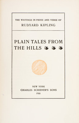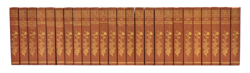 The Writings in Prose and Verse of Rudyard Kipling. New York: Charles Scribner's Sons, 1908-1910.25 vols. 8vo, red cloth with blind-stamped decorative medallion to upper covers, gilt-decorated and -lettered spines. "Outward Bound" edition. Spines uniformly faded; ends bumped; otherwise bindings clean and tight.