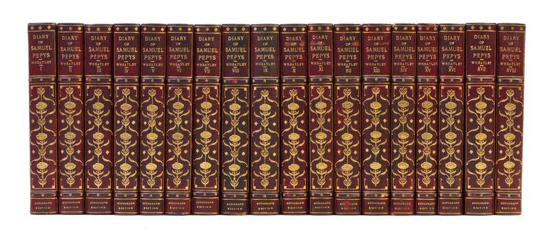 The Diary. Edited by Henry B. Wheatley. New York: George F. Croscup, n.d. (1892)18 vols. 8vo, 3/4 red morocco over marbled boards, marbled endpapers, a.e.g. Number 14 of 125 sets. Rubbing to boards and some chipping to spines; hinges starting.