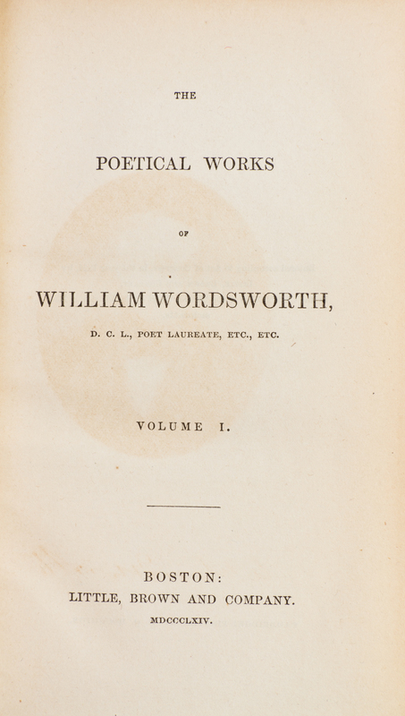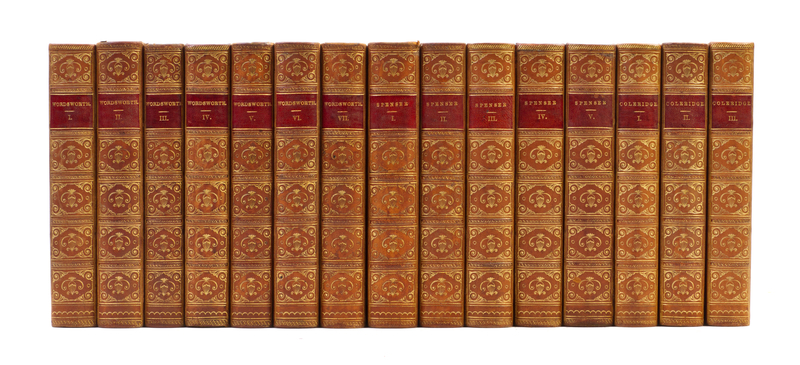 The Poetical Works of Edmund Spenser; William Wordsworth; [and] S.T. Coleridge. Boston: Little, Brown, 1759-1864.15 vols. Small 8vo, uniformly bound in full tan calf, gilt-tooled and -lettered spines, red morocco spine labels. Light edgewear; bookplates tipped to front pastedown all vols.
