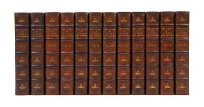 Works. Edited by William J. Rolfe. Boston: Dana Estes, (1895).12 vols. 8vo, finely bound by Hardy, Maillard and Pilon in full crushed navy blue morocco, gilt-lettered spines with gilt-floral designs in compartments and to four corners of boards, t.e.g. Edition de Grand Luxe, limited to 1,000 copies of which this is number 473. Illustrated throughout with black and white steel engravings, each with captioned tissue guards. Minor offsetting from some plates; spines uniformly darkened to brown; otherwise fine.