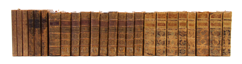 A group of 24 books in five sets, comprising Histoire de Constantinople depuis le regne de l'ancien Justin, jusqu'a la fin de l'empire. Paris: Damien Foucault, 1685. 8 (of 10) vols. only. Iac. Aug. Thuani Histori Arum. Paris: s.n., 1604. 9 vols. Das Dekameron. By Giovanni di Boccacio. Leipzig: Insel, 1912. 3 vols. Lettres du Baron de Busbec. Paris: Claude Jean-Baptiste Bauche, 1748. 3 vols. Theophylacti Bulgariae Archiepiscopi... Paris: Iacobum Bogardum, 1548.