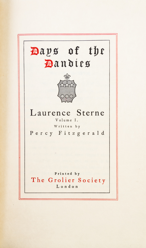 A group of eight books uniformly bound in blue-green morocco from the Days of the Dandies series. London: The Grolier Society, n.d.8 vols. 8vo, gilt-decorated blue-green morocco, gilt-tooled and -lettered spines, t.e.g. Imperial edition, number 540 of 1,000. Light edgewear.