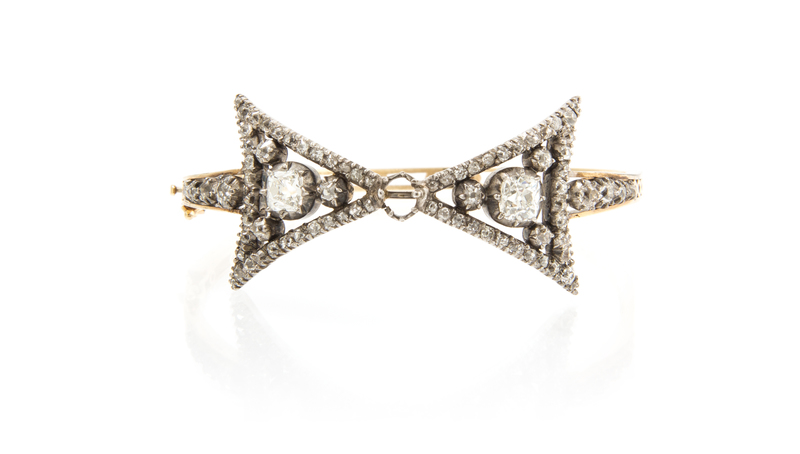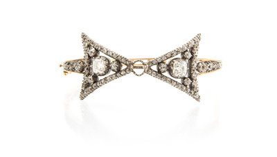 A Victorian Silver Topped Gold and Diamond Bow Motif Bangle,