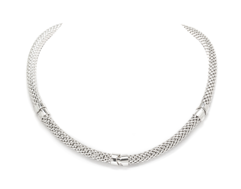 consisting of a popcorn link with three high polish stations.Stamp: 750 KRIA damas (Italian hallmarks).