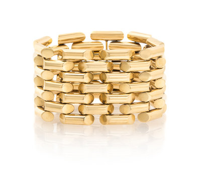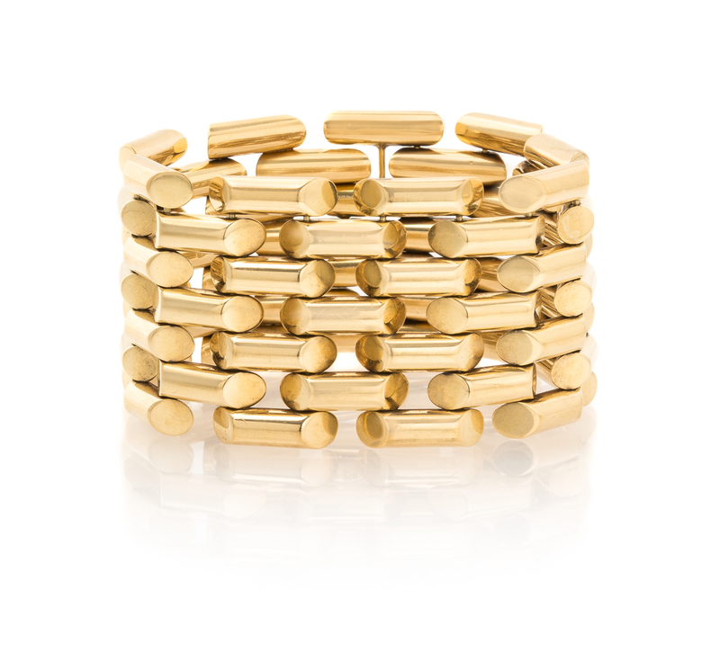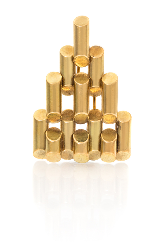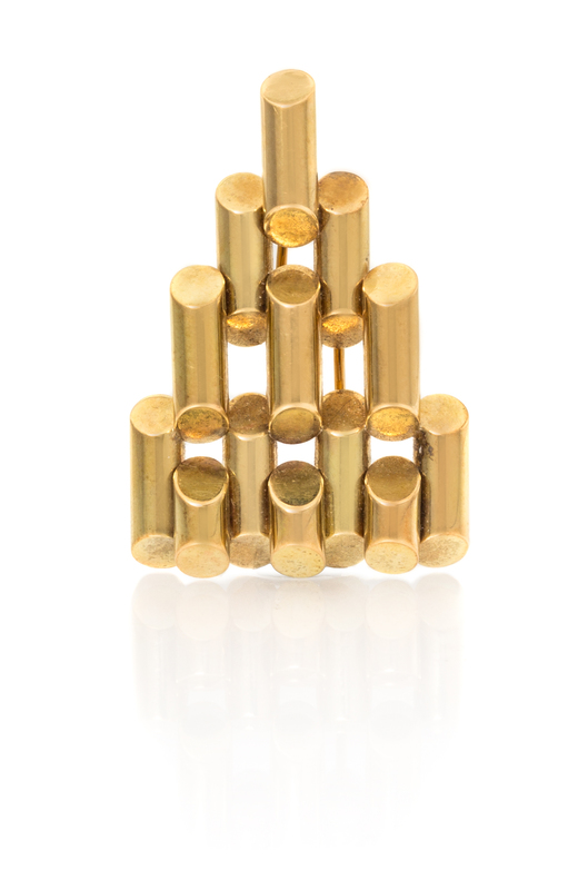 consisting of a stacked cylinder link brooch with beveled edges in a graduated design signed TIFFANY & Co., together with a similar seven row bracelet.