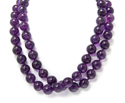 containing 65 round amethyst beads measuring approximately 12.20-12.39 mm in diameter, strung knotted in an endless style.