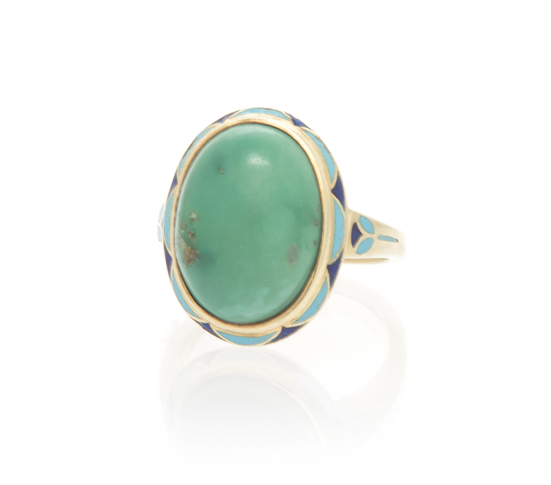 An Antique 14 Karat Yellow Gold, Turquoise and Polychrome Enamel Ring,