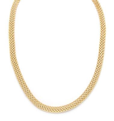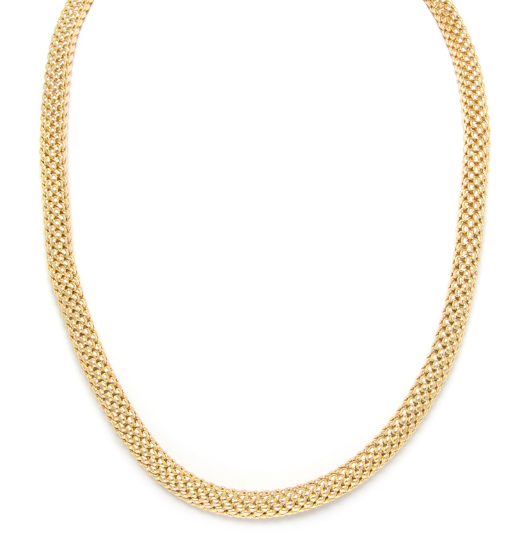 hollow form popcorn chain with safety clasp.Stamp: 750 Kira.