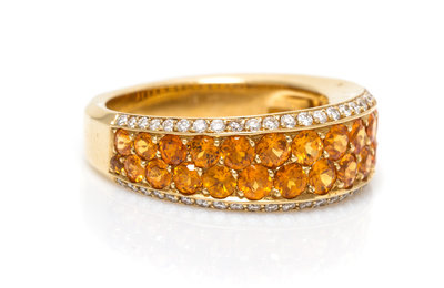 An 18 Karat Yellow Gold, Spessartite Garnet and Diamond Ring, French,