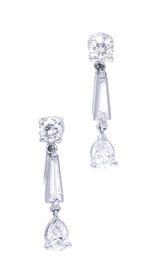 A Pair of 14 Karat White Gold and Diamond Dangle Earrings,