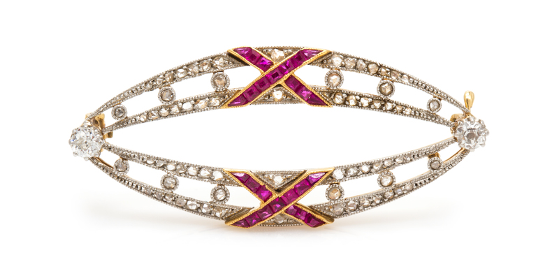 A Platinum Topped Yellow Gold, Diamond and Ruby Brooch,