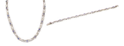A 14 Karat White Gold, Tanzanite and Diamond Demi Parure,