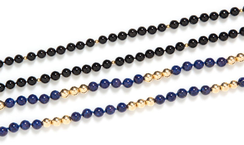 A Collection of Yellow Gold, Lapis Lazuli and Onyx Bead Necklaces,