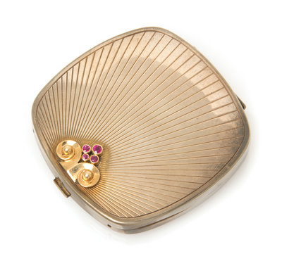 A Sterling Silver, 14 Karat Yellow Gold and Ruby Compact,