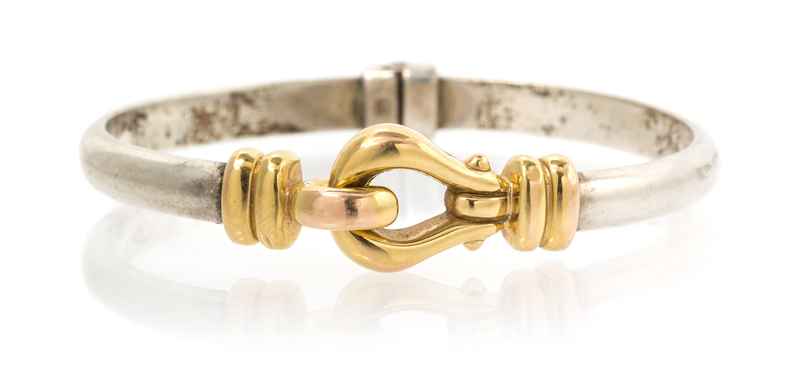 A 14 Karat Yellow Gold and Sterling Silver Bangle Bracelet,