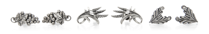 consisting of a pair of wheat motif earclips, a pair of grape motif earclips and a pair of feather motif earclips.Stamp: DANECRAFT STERLING.