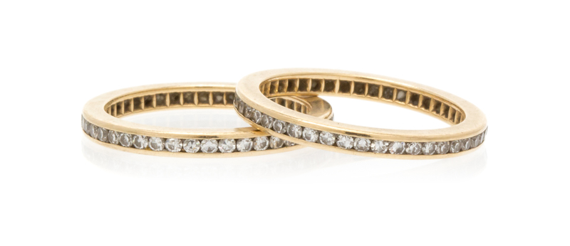 A Pair of Yellow Gold and Diamond Eternity Bands,