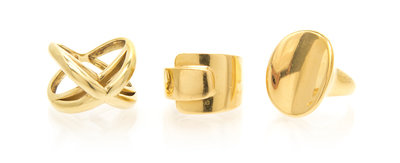 consisting of a curved "X" ring, an 18 karat gold overlapping ring and a concave oval ring.