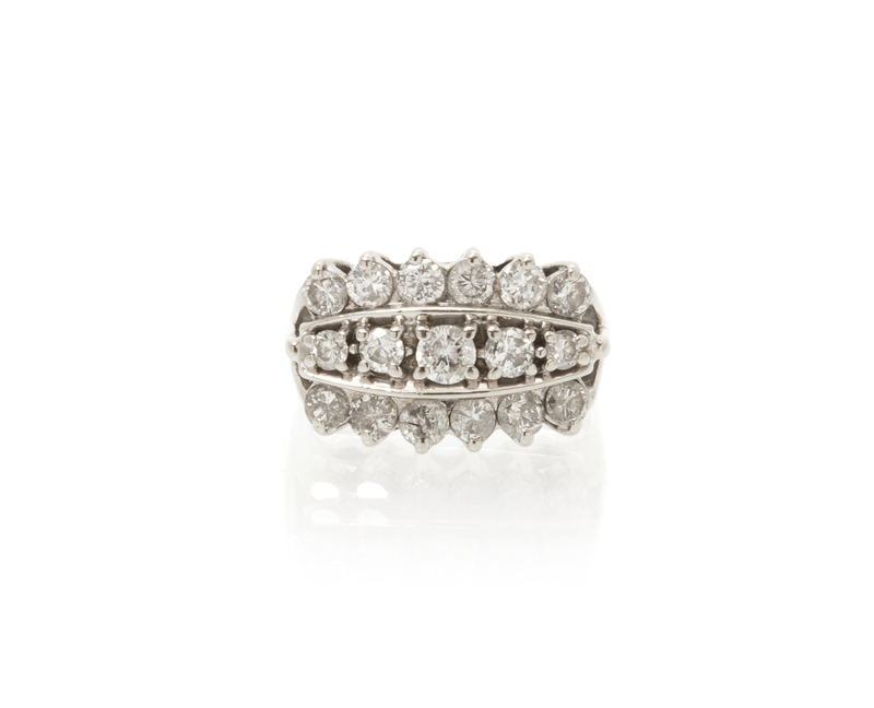 containing 17 round brilliant cut diamonds weighing approximately 1.29 carats total.Stamp: MN.
