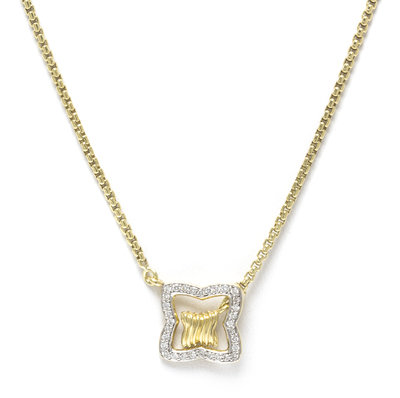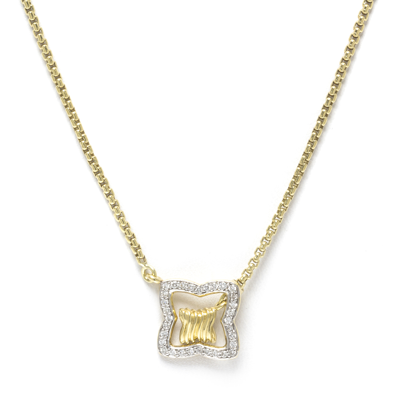 containing 32 round brilliant cut diamonds weighing approximately 0.19 carat total within a quatrefoil motif.Stamp: DY 925 750.