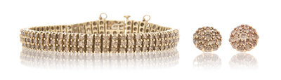 consisting of a bracelet and a pair of earrings containing numerous round brilliant cut diamonds weighing approximately 5.75 carats total.Bracelet stamp: 14K.