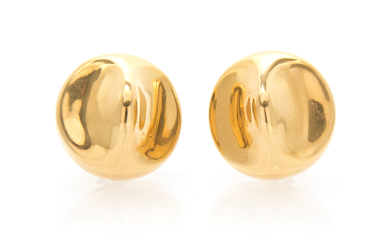 A Pair of 14 Karat Yellow Gold Button Earrings,