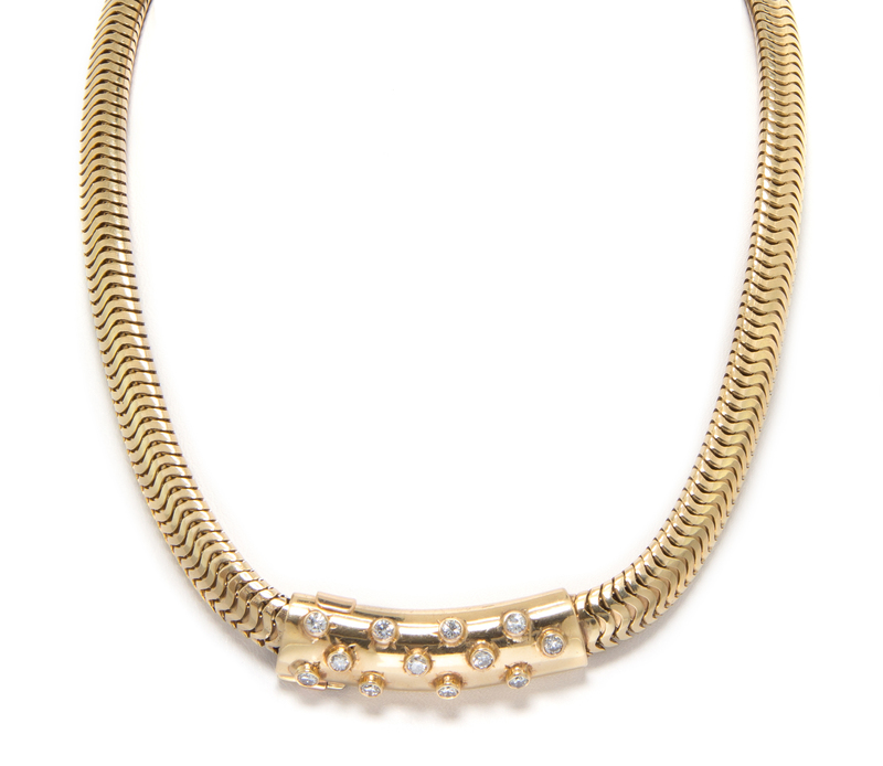 A Yellow Gold and Diamond Tubogas Necklace, Circa 1940,